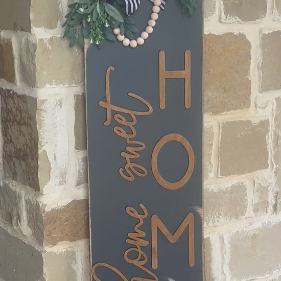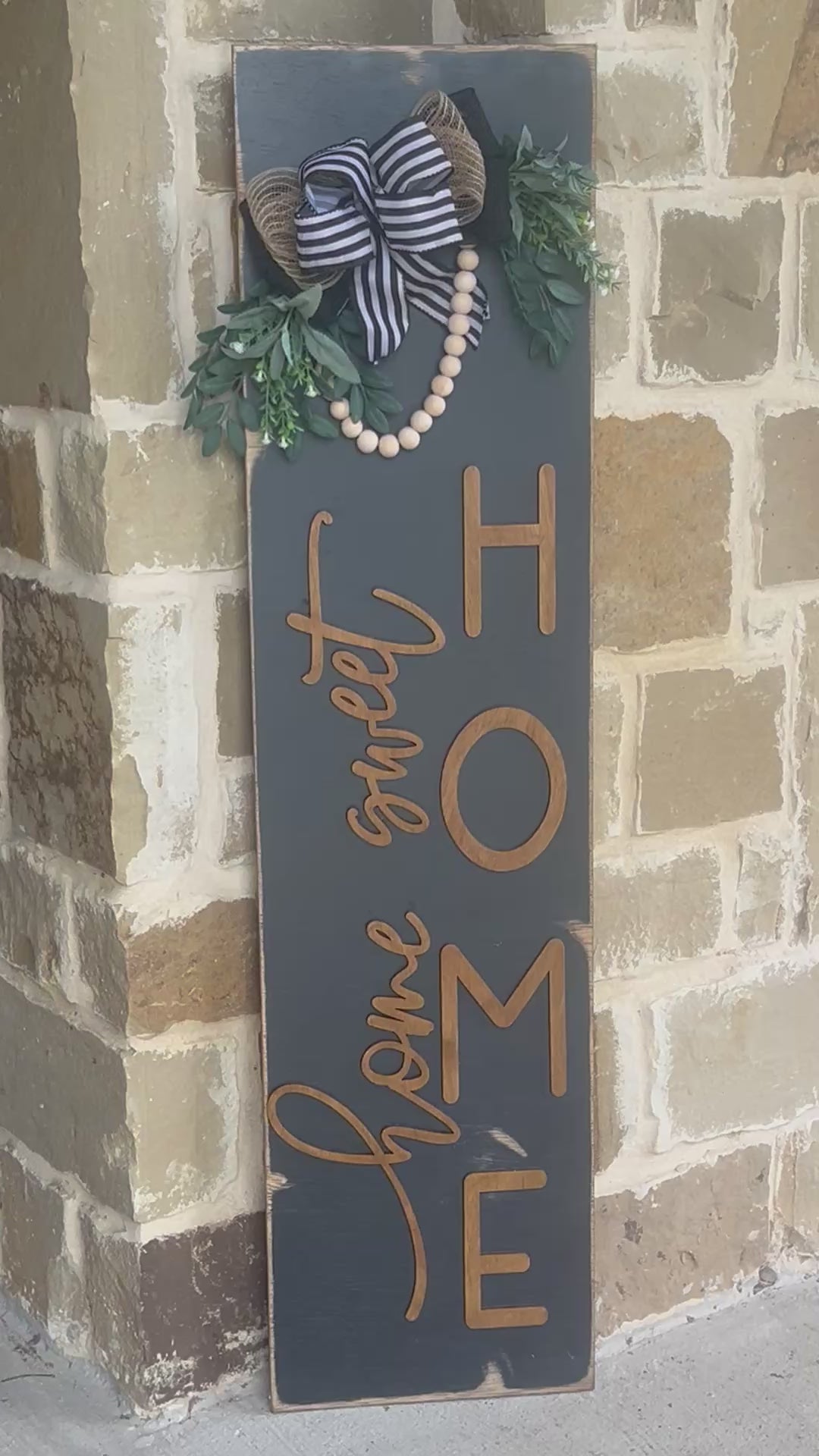 Welcome your guests with the warmth and charm of our Black Home Sweet Home lean, a rustic door decor masterpiece that seamlessly blends the timeless beauty of natural wood with the sleek elegance of modern black accents. Perfect for any farmhouse entryway decor, this stunning door lean is not just a piece of modern wooden signage; it's a heartfelt invitation to experience the comfort and joy of your home. Whether you're looking to enhance your home decoration or simply add a touch of home sign art, this door lean is designed to captivate and inspire.