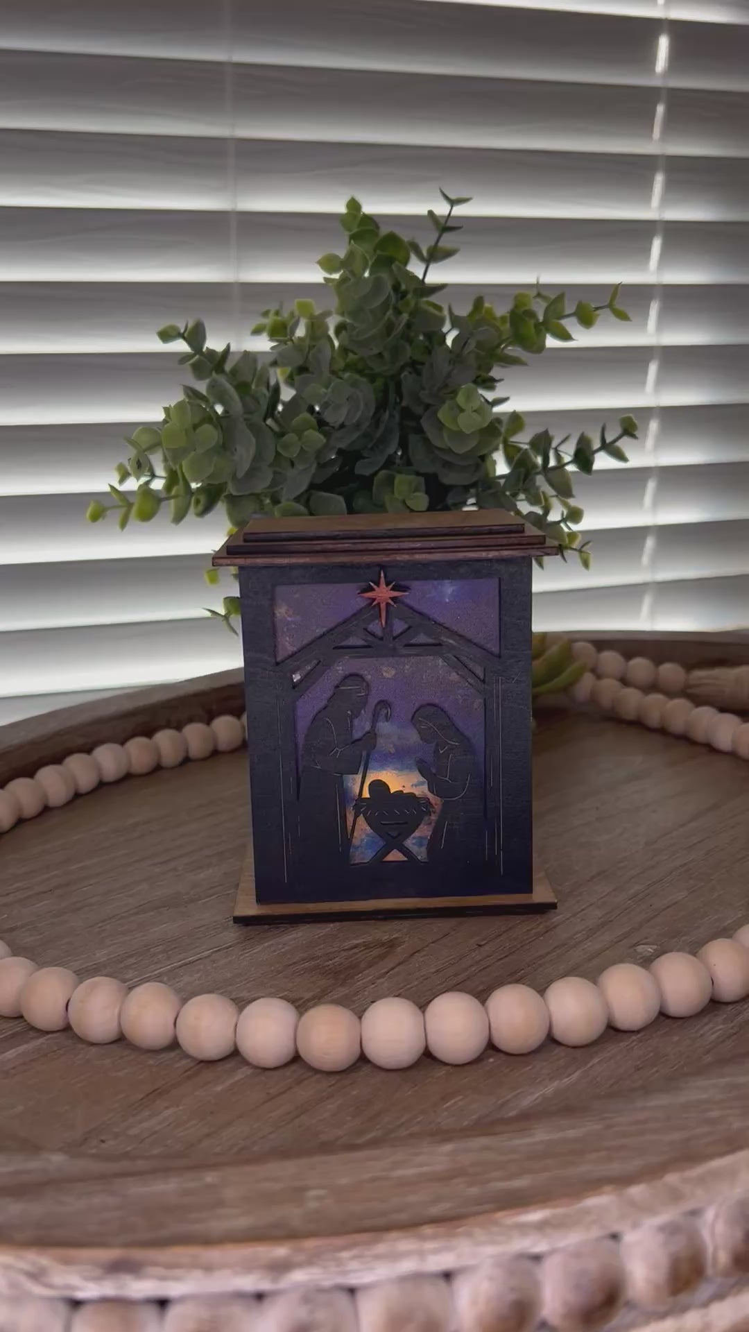 Every Nativity lantern for Tea-light is lovingly made with attention to detail, featuring a black exterior contrasted by a warm golden oak stained top and bottom. Whether you're placing it on a mantel, using it as a table centerpiece, or gifting it to a loved one, this lantern can be tailored to bring an extra layer of warmth and meaning to your holiday celebrations.