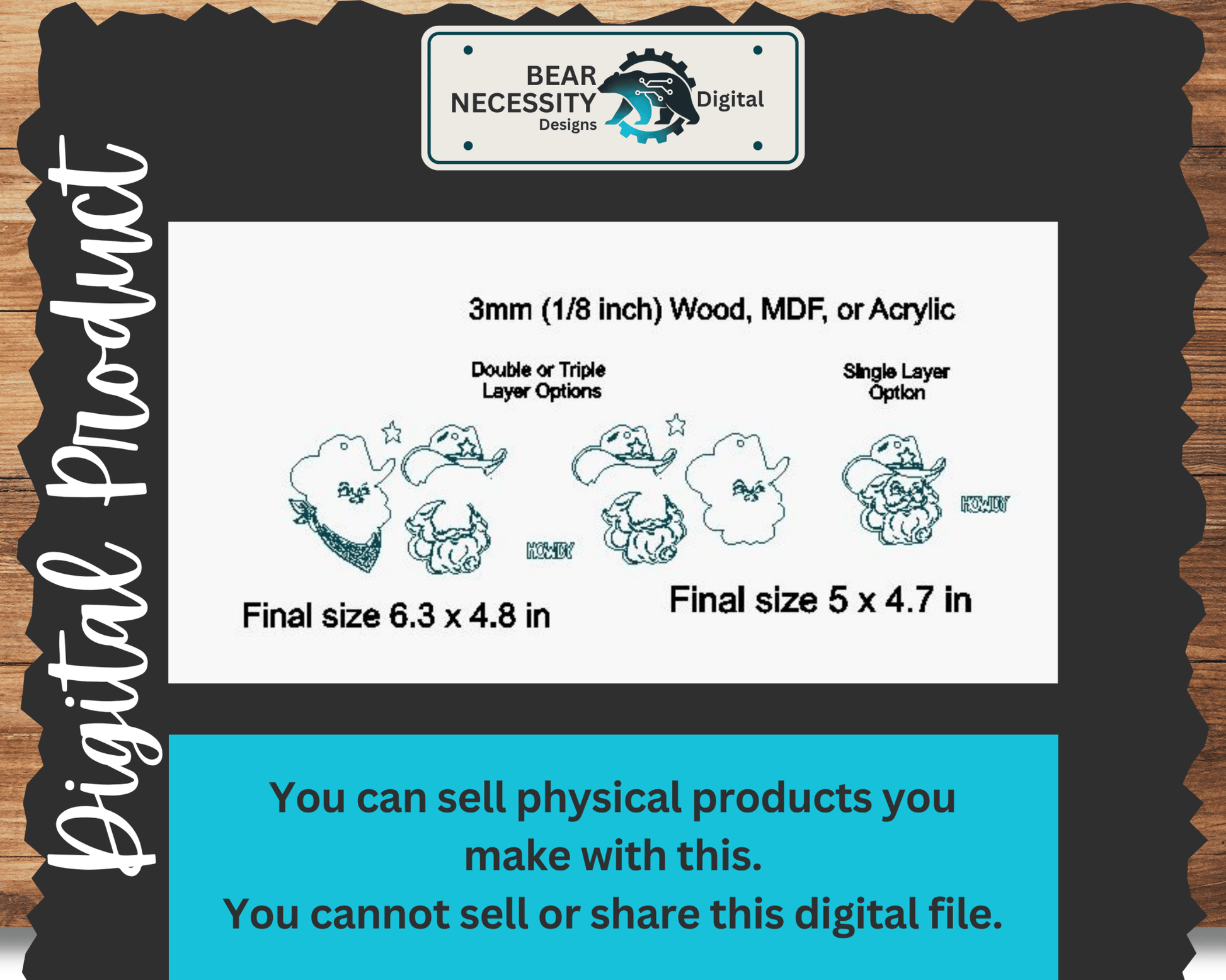 This festive Cowboy Santa Ornament Laser Cut File features a jolly Santa in a cowboy hat and a bold “Howdy” greeting. Designed for laser cutters like Glowforge, xTool, and Thunder, this file is perfect for rustic Christmas ornaments, western gift tags, farmhouse holiday decor, or tiered tray signs.