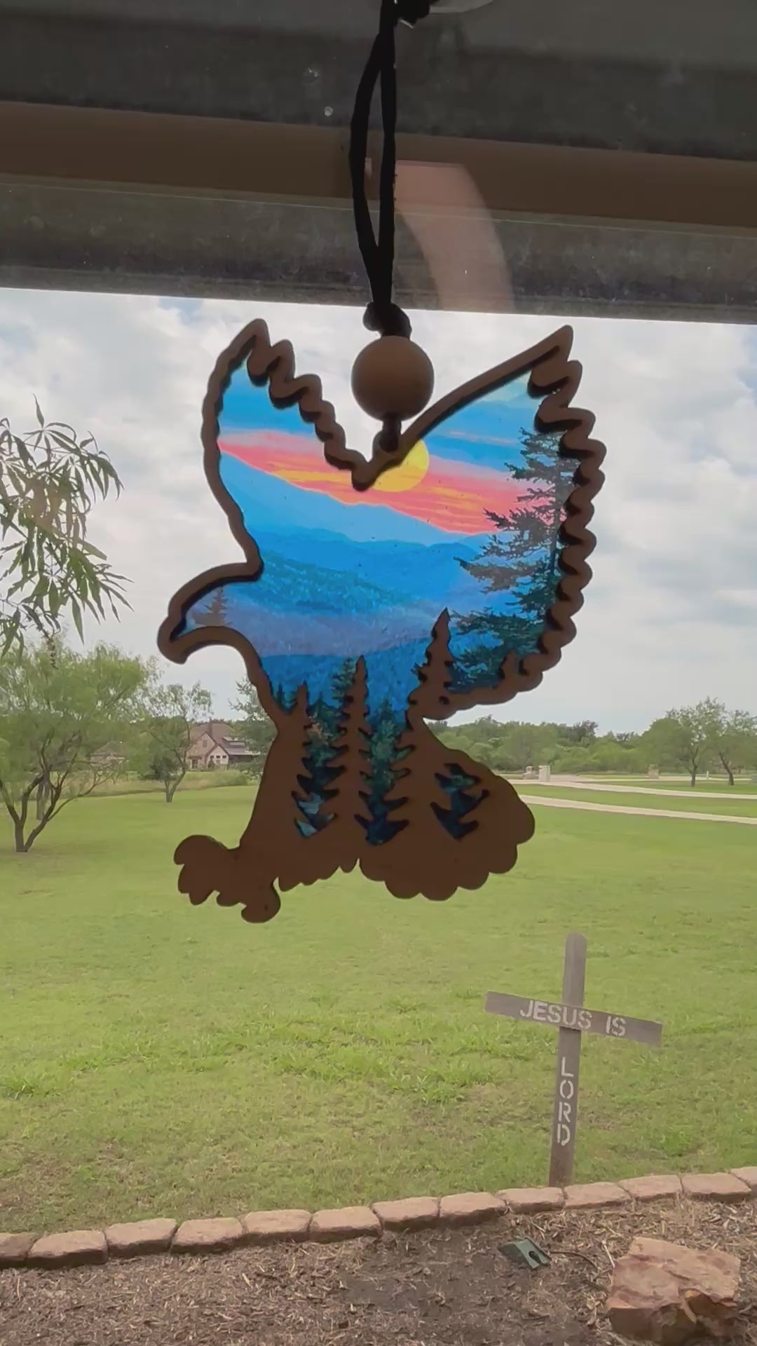 The acrylic sun-catcher features a majestic eagle soaring over a mountain peak, capturing a moment of freedom and grace. The vibrant colors and intricate design of the sun-catcher are sure to catch the eye and spark conversation among your guests. Hang it near a window to let the sunlight illuminate the intricate details, creating a mesmerizing display of light and shadow.
