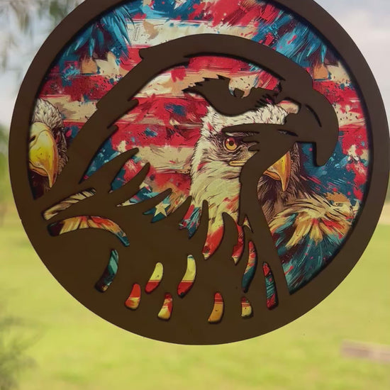 Eagle Suncatcher - Stained Glass Effect | Rustic Wood & Acrylic Art