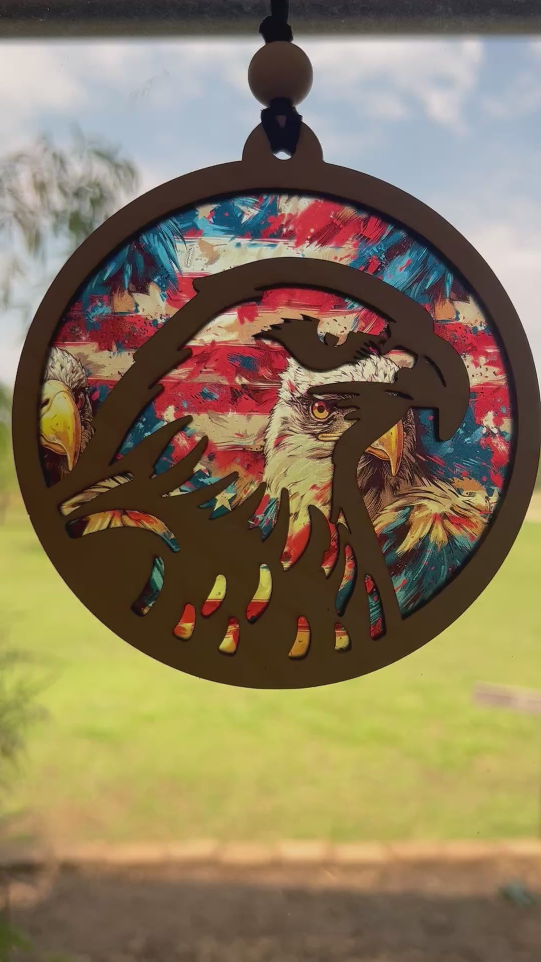 Crafted from high-quality acrylic, this Eagle Suncatcher offers the look of real stained glass without the fragility and weight. The vibrant colors and intricate details of the eagle design are preserved beautifully in the acrylic, creating a stunning piece of art that will enhance any space.