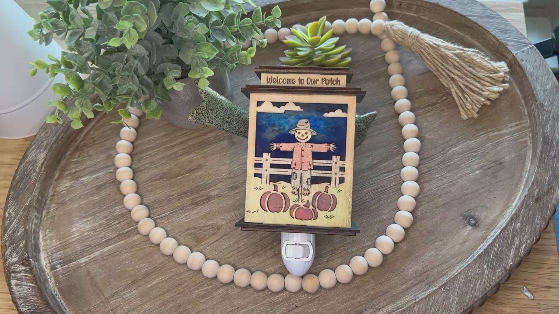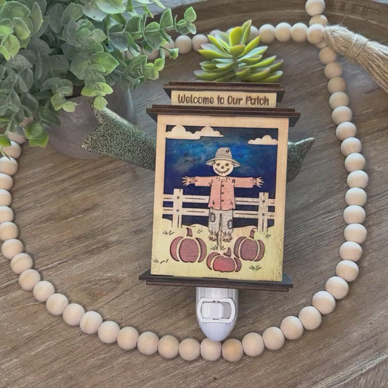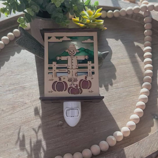 Bring cozy autumn vibes to your home with this Scarecrow in a Pumpkin Patch Lantern Nightlight Bundle 🎃🌾.