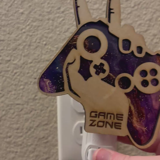 Illuminate your gaming space with our one-of-a-kind Gamer Nightlight featuring a stunning stained glass effect. Made from high-quality wood and acrylic, this nightlight creates a warm and inviting ambiance that enhances your gaming experience. The intricate design is perfect for any gamer looking to add a touch of style to their room.