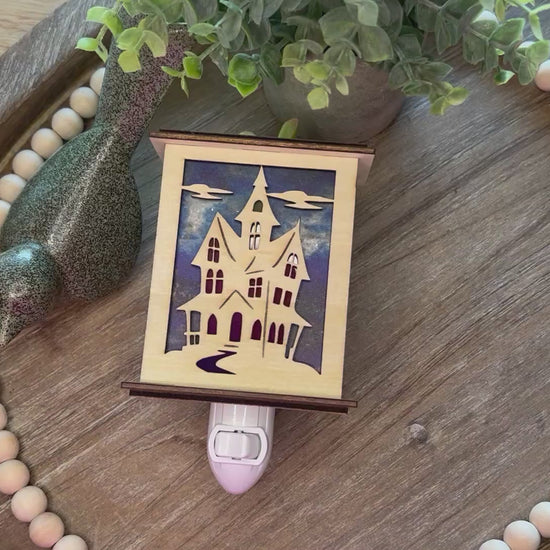 Step into a world of enchanting elegance with our Halloween Haunted House Lantern Nightlight. This charming piece of rustic nightlight decor is more than just a source of gentle illumination—it's a gateway to the mystical allure of Halloween. Crafted for those who adore the interplay of light and shadow, this wooden Halloween decor piece is perfect for creating an inviting atmosphere in any room. Imagine the delight of your guests as the multicolored lights dance through the intricately designed windows of this haunted house, casting playful shadows and igniting imaginations.
