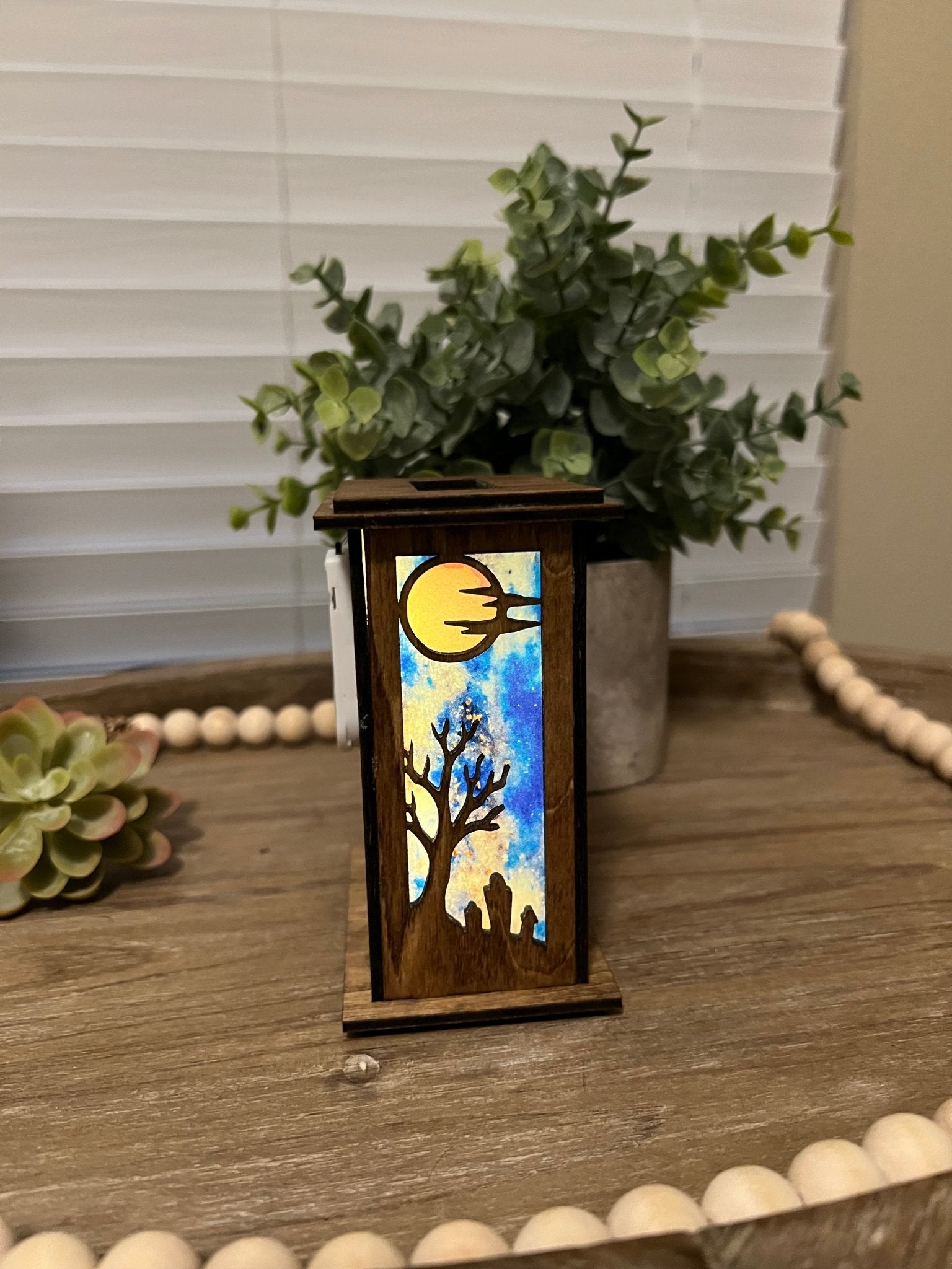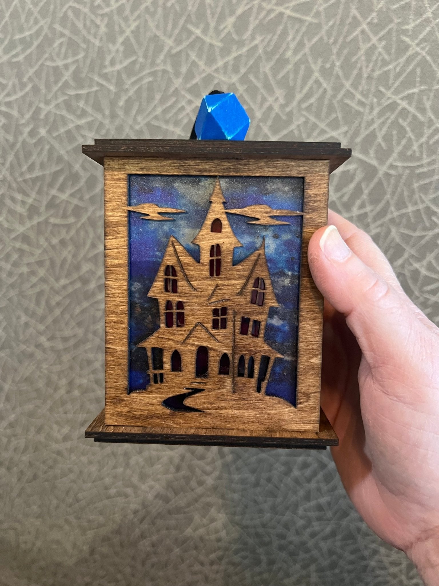 4.5 in haunted house lantern (freestanding with tea light and fairy light back options)