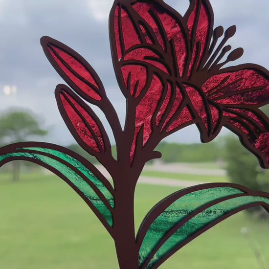 Red Daylily Suncatcher - Rustic Stained Glass Effect for Home