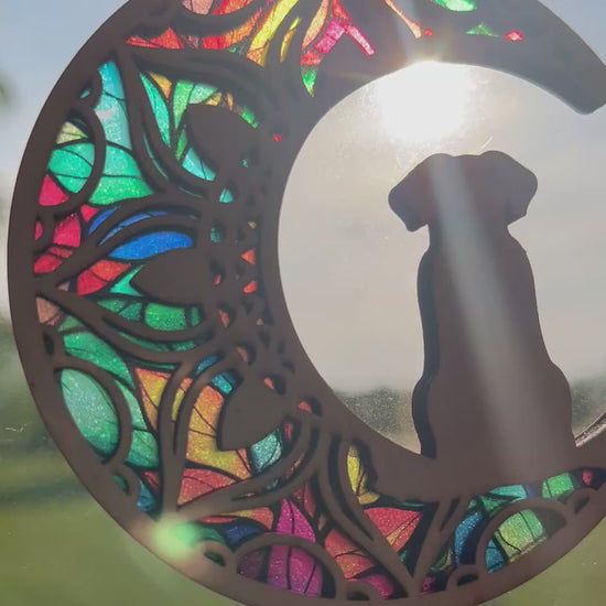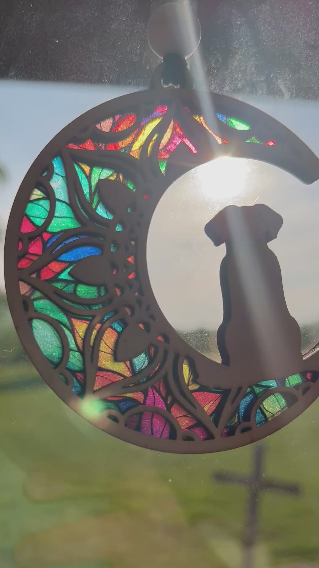 Embrace the enchanting allure of the night with our Dog on the Moon Stained Glass Effect Wood and Acrylic Suncatcher. This exquisite wood and acrylic suncatcher captures the whimsical beauty of a dog silhouetted against a radiant moon, bringing a touch of magic and charm to any space. Perfectly blending rustic warmth with modern elegance, this piece is an enchanting addition to your collection of handmade decor and a thoughtful choice among rustic-modern gifts for loved ones.