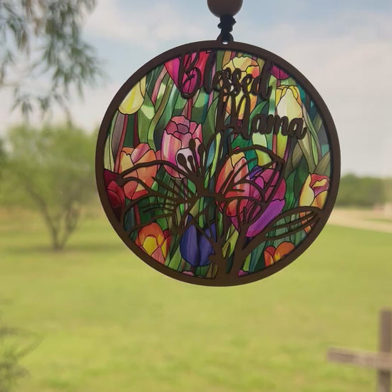 Introducing the Blessed Mama Suncatcher, a delightful fusion of rustic charm and modern elegance that adds a touch of warmth and color to any space. This exquisite suncatcher is not just a piece of decor, but a celebration of motherhood and a perfect gift for the beloved 'Mama' in your life. Crafted with precision, it features a beautiful stained glass effect that dances with light, creating a kaleidoscope of colors that will brighten up any room. Whether you're looking to enhance your home or searching for that perfect rustic decor gift, this suncatcher is a must-have for those who cherish handmade home accents.