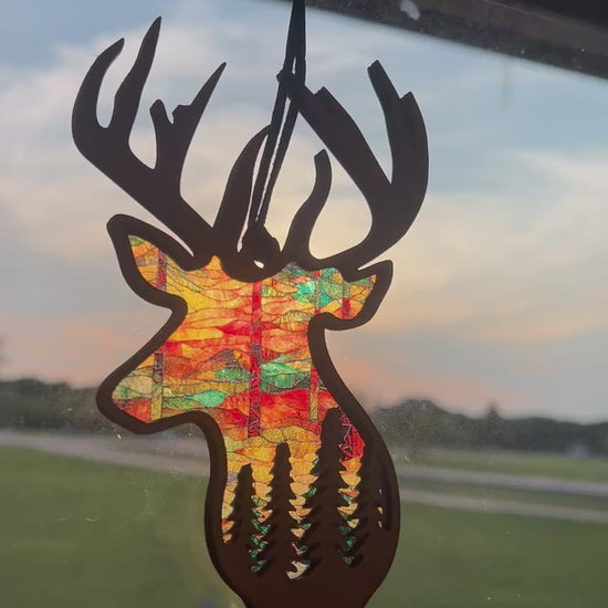 Buck Stained Glass Wood Suncatcher - Rustic Car Charm Gift