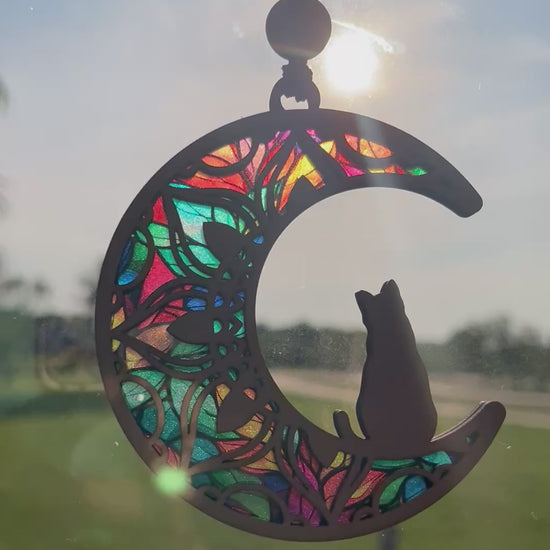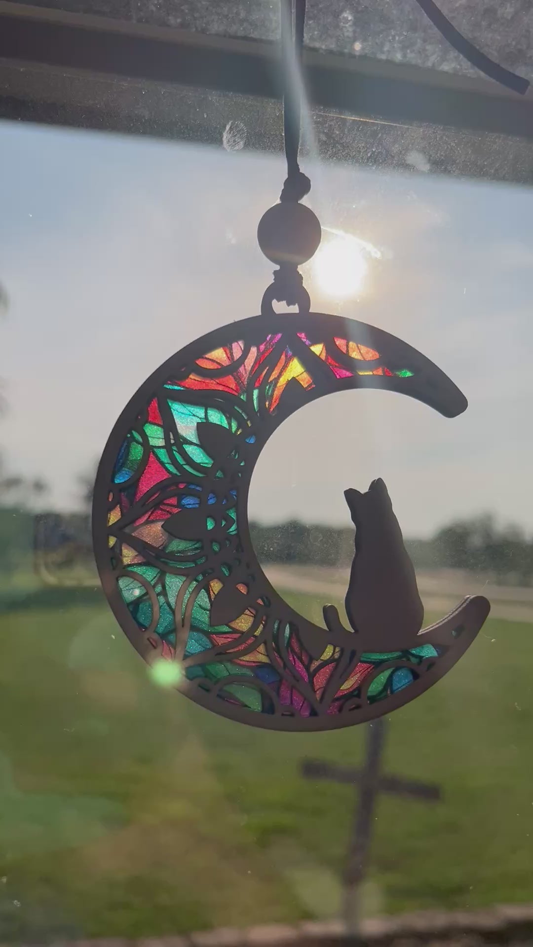 Transform your home into a sanctuary of whimsy and warmth with our enchanting Cat on the Moon Suncatcher. Perfectly blending rustic charm with modern elegance, this exquisite piece serves as a whimsical home accent that captivates both heart and eye. Crafted with meticulous attention to detail, it combines the natural beauty of wood with the vibrant allure of colorful acrylic, creating a moon shaped decor that radiates a soft, inviting glow. Whether it's the gentle sway in the breeze or the way it catches the morning sun, this suncatcher is more than just decor—it's an experience.