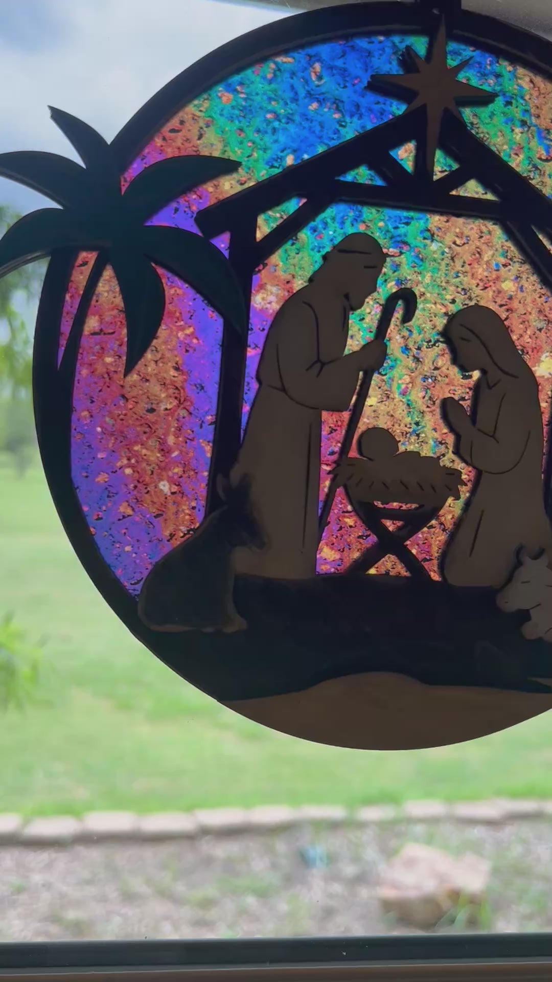 Nativity Suncatcher - Rustic Christmas Window Art