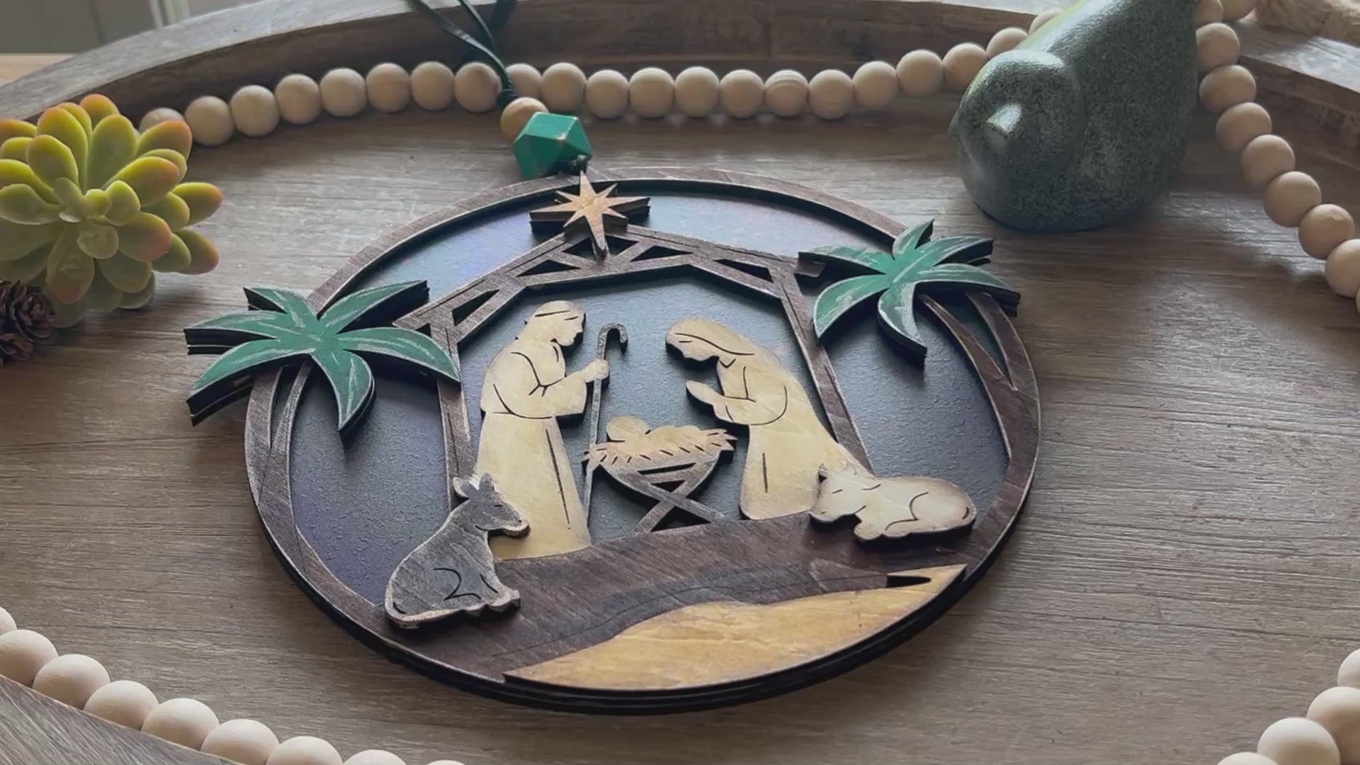 Add the serene beauty of our Christmas Nativity Suncatcher to your home, a perfect blend of rustic charm and modern elegance. This exquisite handmade and handpainted suncatcher captures the essence of the nativity scene, bringing a touch of divine warmth to your holiday decor. Crafted with care from natural wood and vibrant multicolor acrylic, it transforms sunlight into a stunning display of festive colors, making every window a canvas for Christmas magic.