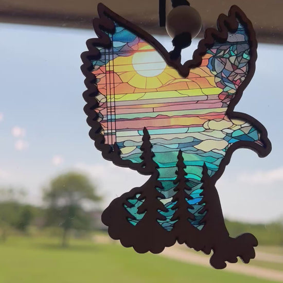 Handcrafted from high-quality wood and acrylic, the Eagle in Flight Suncatcher is a testament to the artistry and skill involved in its creation. The natural wood frame harmonizes beautifully with the multicolored acrylic, creating a stunning contrast that enhances the suncatcher's visual appeal.