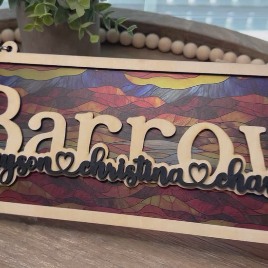 Designed with care and precision, our suncatcher features a harmonious blend of natural wood and vibrant acrylic, simulating the stunning stained glass effect without compromising the rustic appeal. Each piece is meticulously crafted, ensuring that no two are exactly alike—just like your family. It's a wonderful gift for anyone who values uniqueness and the beauty of handcrafted art. Imagine the delight on their faces as they see their family name beautifully incorporated into the design, making it truly their own.