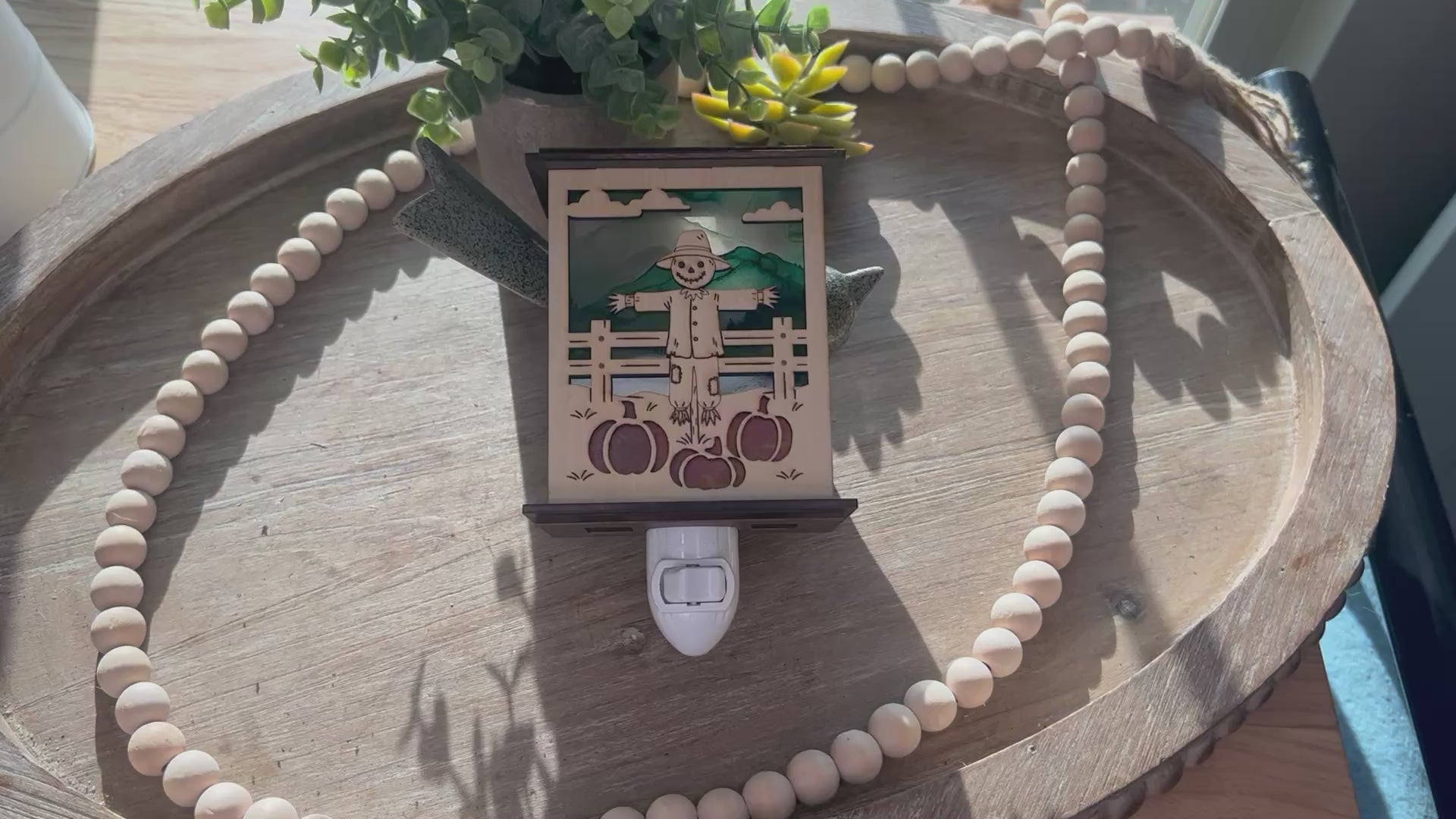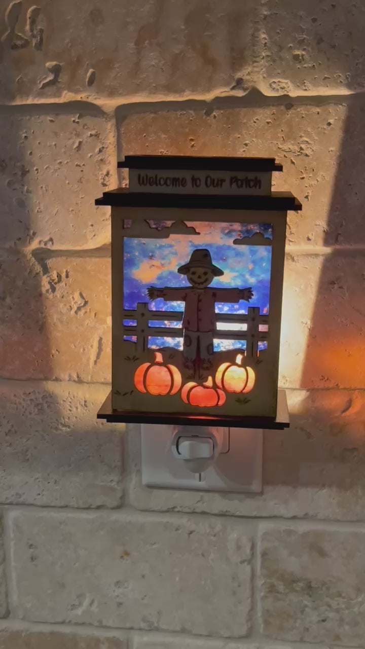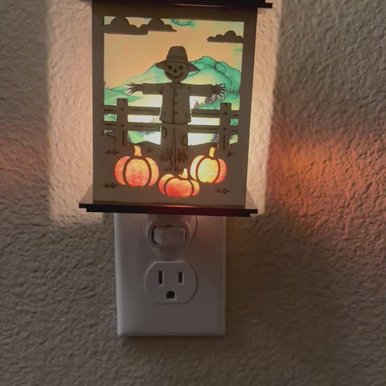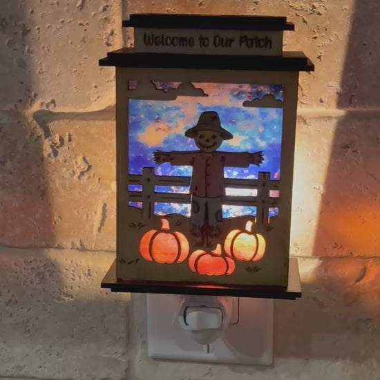 Bring cozy autumn vibes to your home with this Scarecrow in a Pumpkin Patch Lantern Nightlight Bundle 🎃🌾.