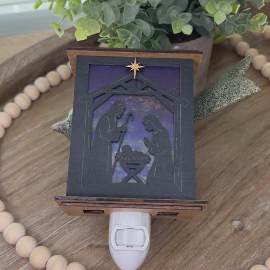 This layered digital cut file features the Holy Family in the manger beneath a starry sky, designed for laser cutting machines like Glowforge, xTool, OMTech, Epilog, and Thunder. Craft a glowing lantern or plug-in nightlight that beautifully captures the spirit of O Holy Night. Perfect for handmade Christmas décor, religious gifts, or church craft fairs.