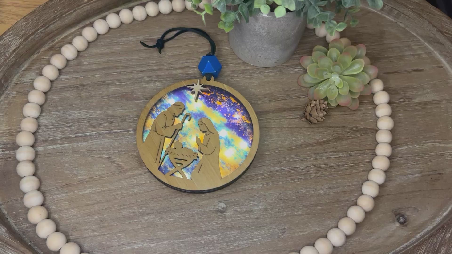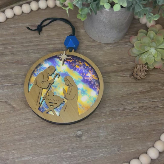 Lighted Nativity Ornament - Rustic Wood & Acrylic Christmas Décor