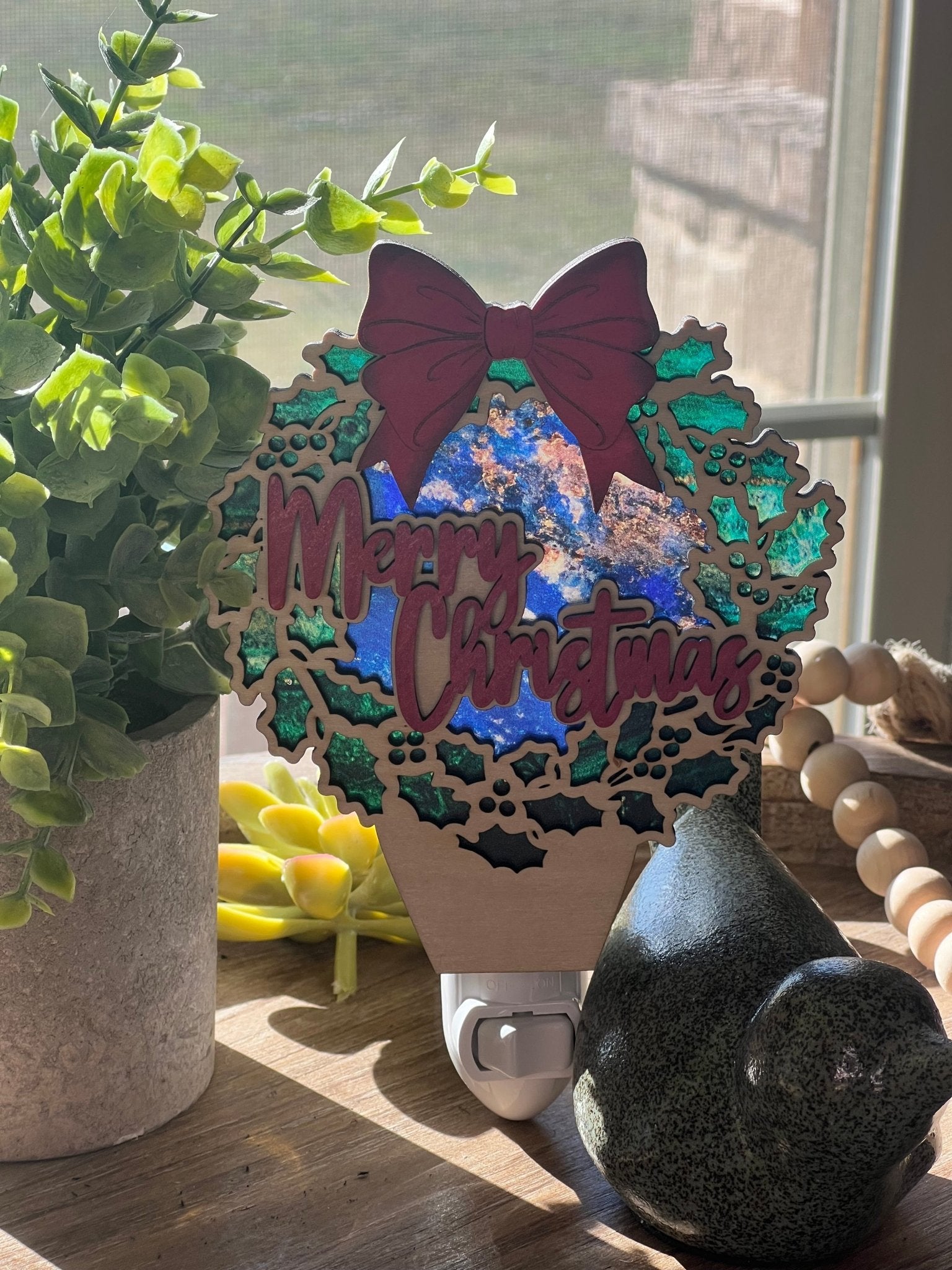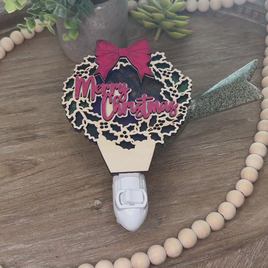 Merry Christmas Nightlight - Rustic Wood & Acrylic Holiday Decor