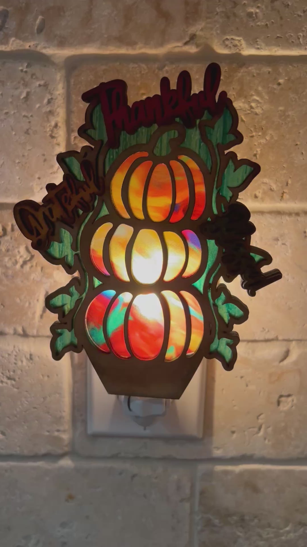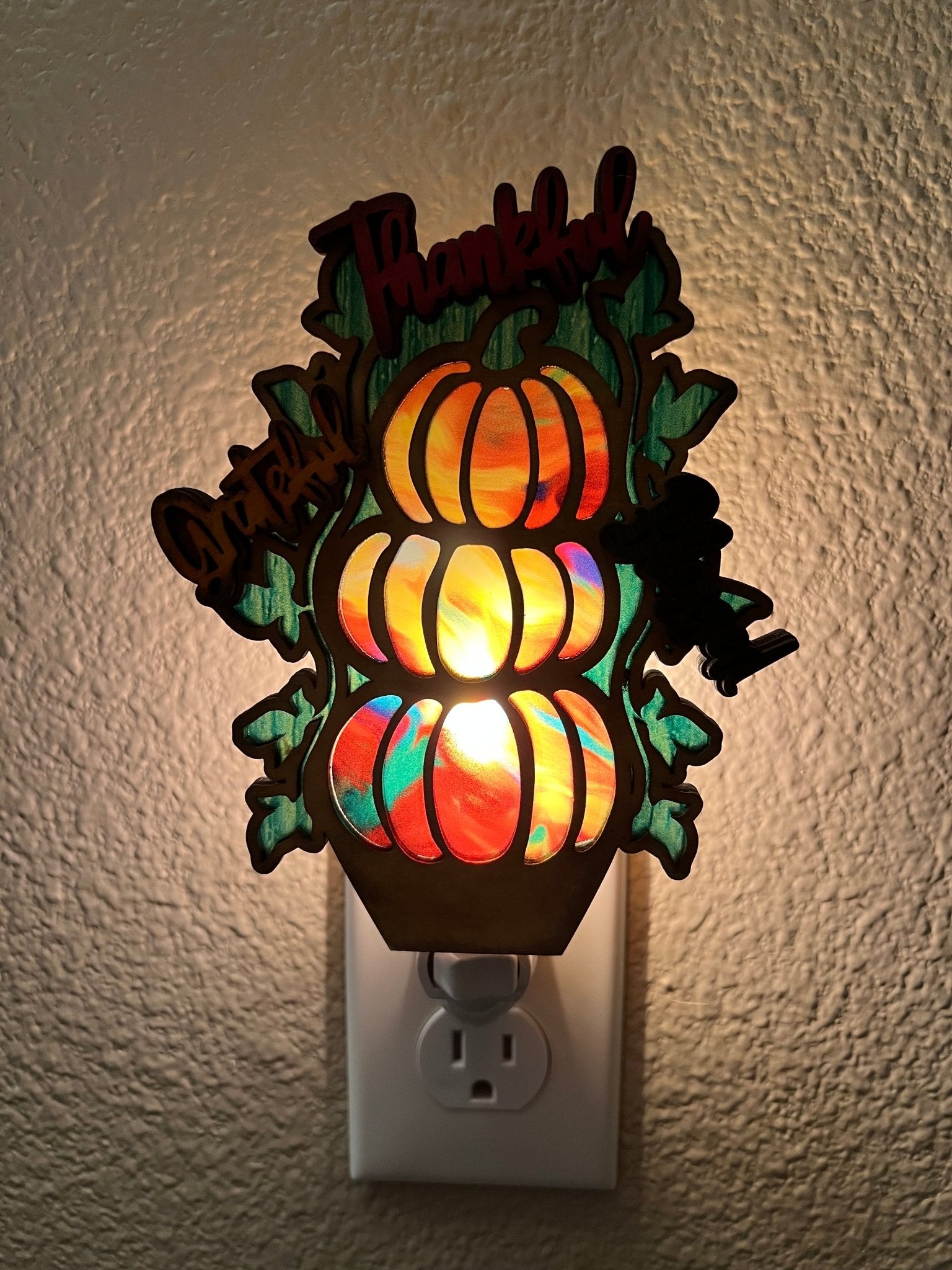Each Thankful Grateful and Blessed Trio Pumpkin Nightlight is lovingly handcrafted, combining the natural beauty of wood with the brilliance of multicolored acrylic accents. The intricate details are a testament to skilled craftsmanship, ensuring that every piece is unique.