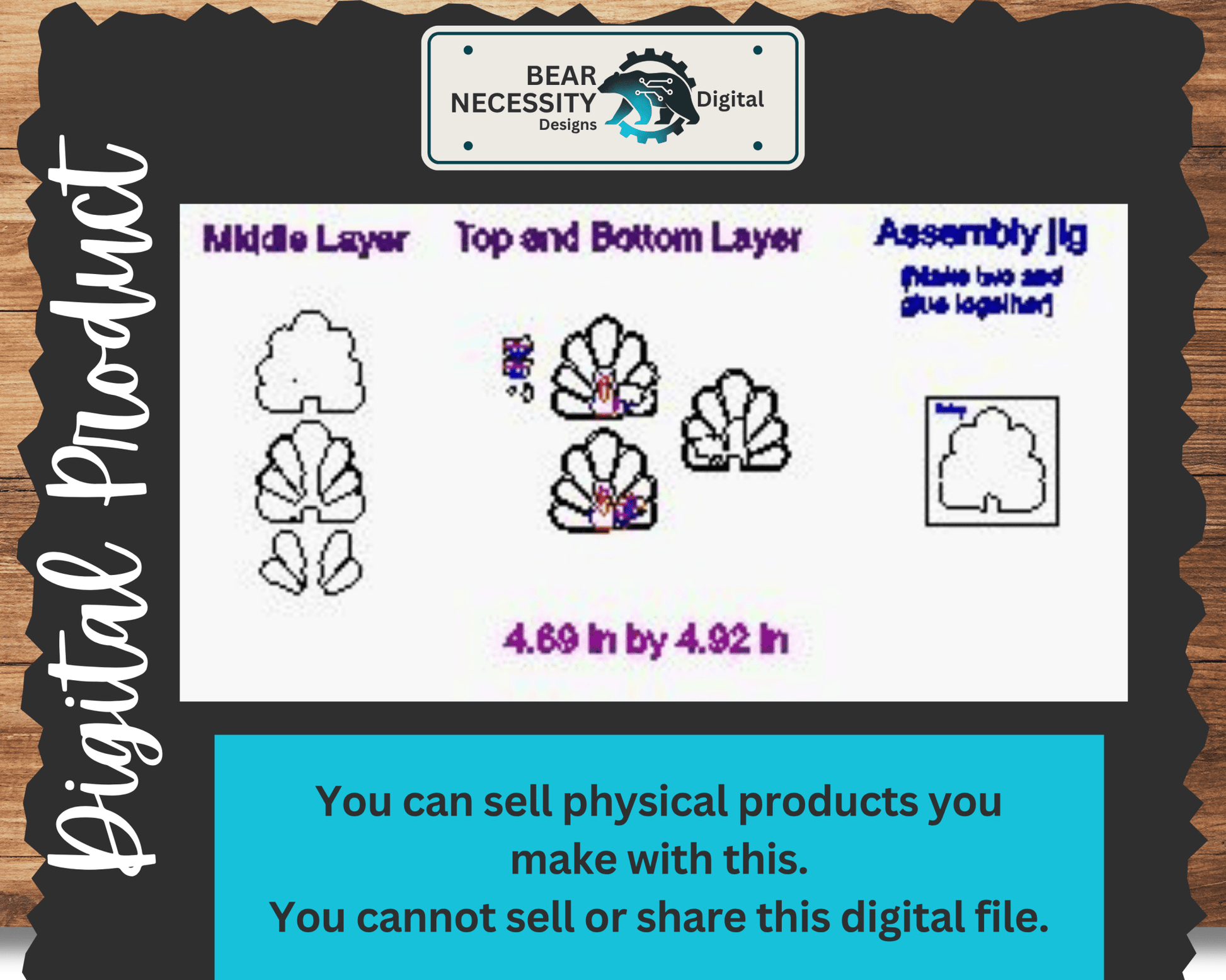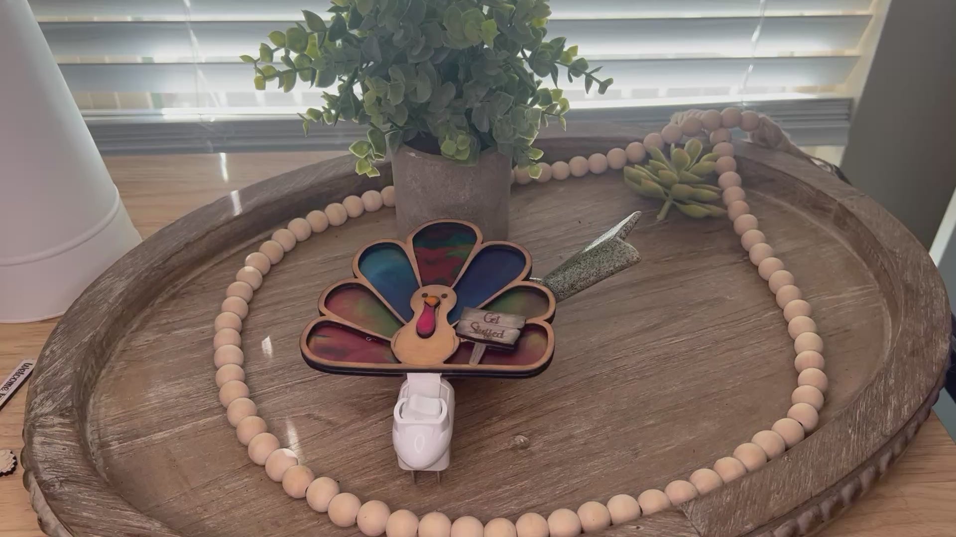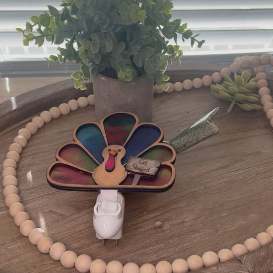 This Turkey Thanksgiving Nightlight SVG Bundle brings a festive touch to your fall décor. Designed for laser cutting machines, this layered design features a cheerful turkey with stained-glass-style feathers and a playful “Get Stuffed” sign (also comes with "Give Thanks" sign option — perfect for adding personality to your autumn collection.