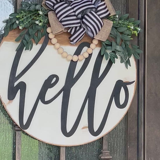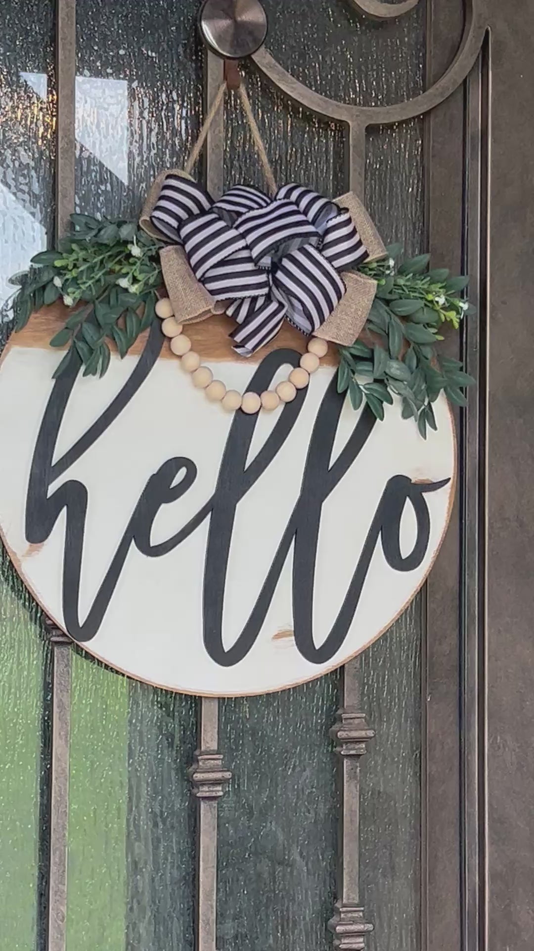 Handcrafted from high-quality wood, our door hanger boasts a timeless white finish adorned with a bold black 'Hello' greeting, creating a striking contrast that stands out beautifully against any front door. Measuring a generous 18 inches, it serves as an inviting beacon for friends and family, while seamlessly blending with various decor styles from rustic to modern. This versatile piece is more than just a decoration; it's a heartfelt welcome that turns a house into a home.